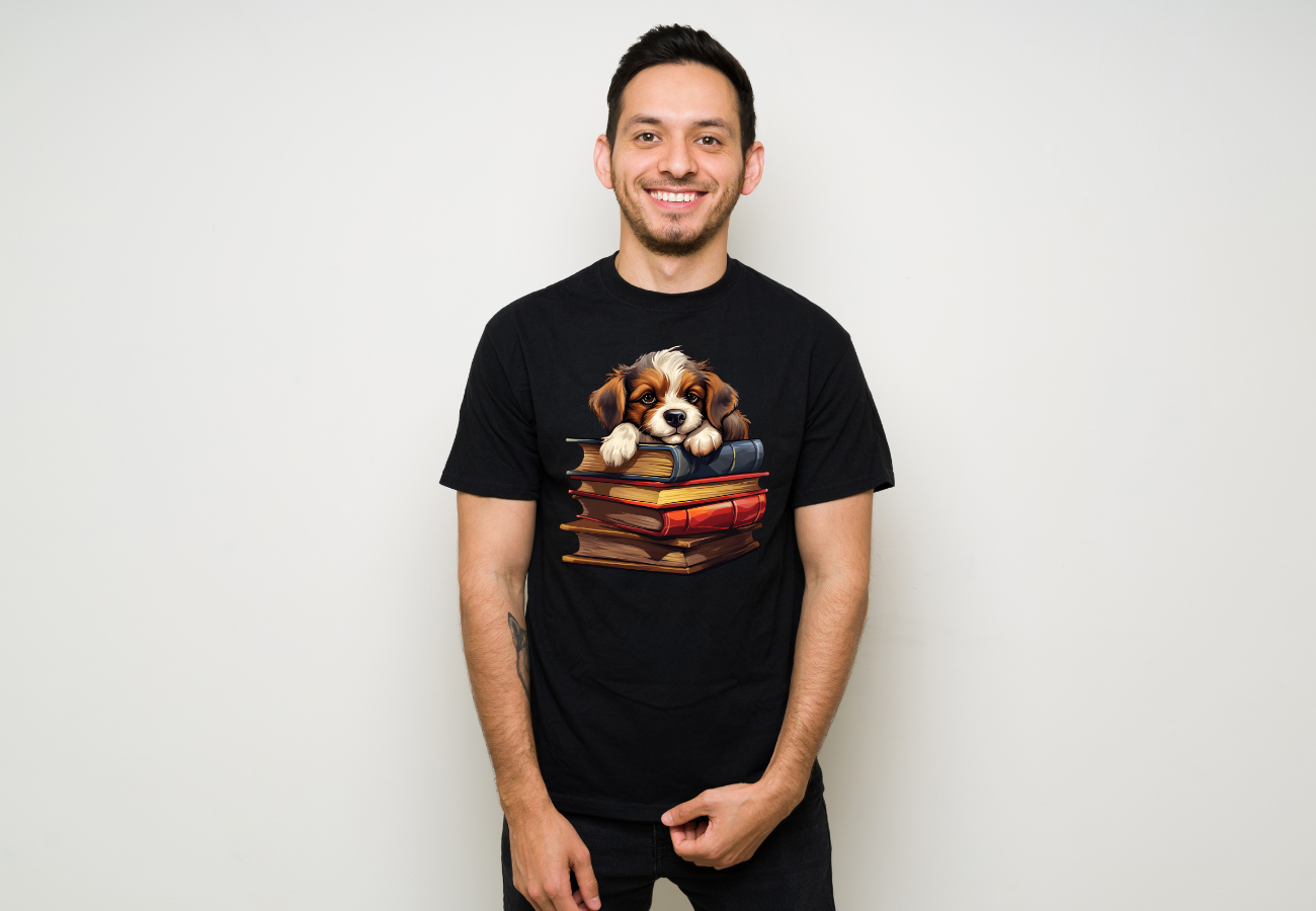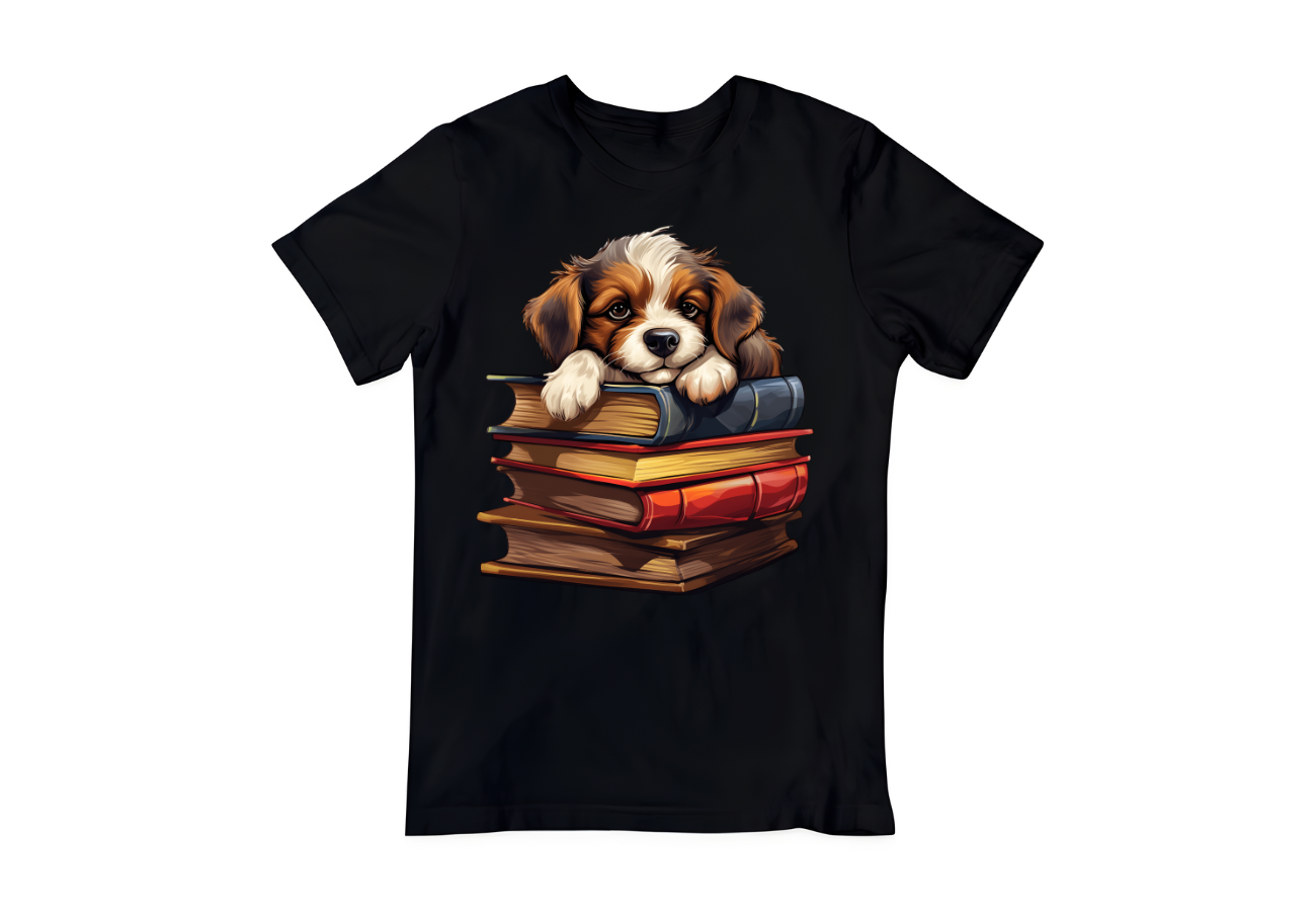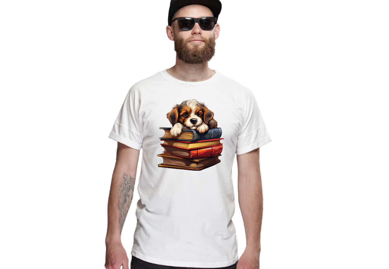 Koszulka Śpiący Pies Na Książkach2