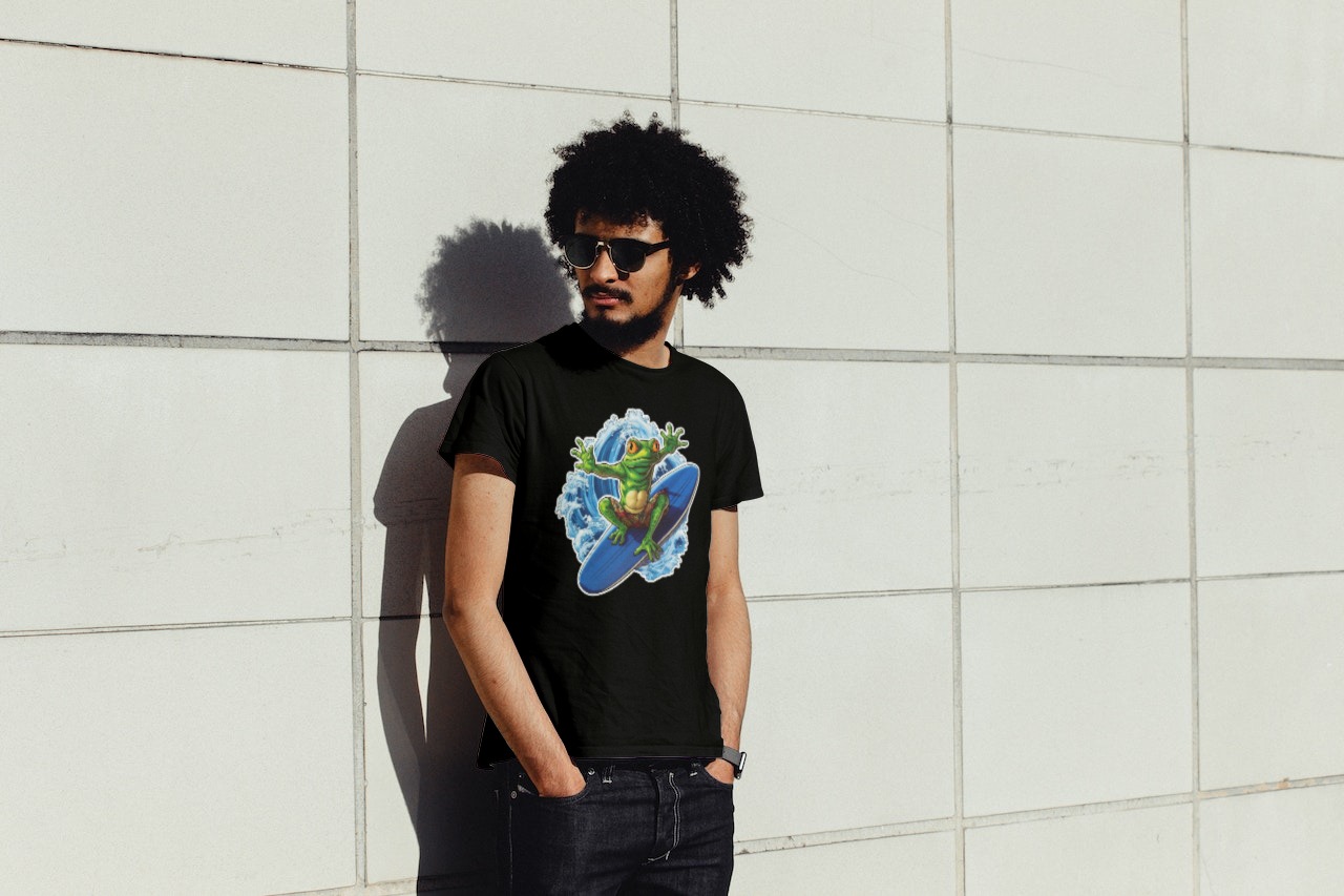 Ta koszulka przedstawia komiczną grafikę surferującej żaby. Wyobraź sobie żabę, która z gracją i swobodą pokonuje fale na desce. Ta koszulka to doskonały wybór dla miłośników surfingu, którzy chcą wyrazić swoje zamiłowanie do tego sportu w zabawny sposób. Przygotuj się na fale i wyraź swoją pasję surfingową z koszulką Surfing Frog!