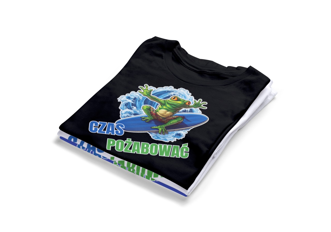 Ta koszulka przedstawia komiczną grafikę surferującej żaby. Wyobraź sobie żabę, która z gracją i swobodą pokonuje fale na desce. Ta koszulka to doskonały wybór dla miłośników surfingu, którzy chcą wyrazić swoje zamiłowanie do tego sportu w zabawny sposób. Przygotuj się na fale i wyraź swoją pasję surfingową z koszulką Surfing Frog!