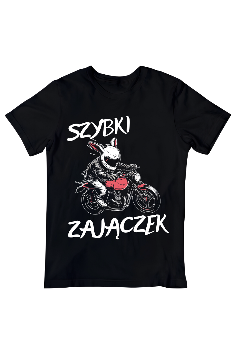 Szybki Zajączek na Motorze! Ta koszulka to idealny wybór dla miłośników motoryzacji i świątecznego humoru. Dodaj odrobinę zabawy do swojego stroju na Wielkanoc i daj się ponieść wesołej atmosferze świąt!