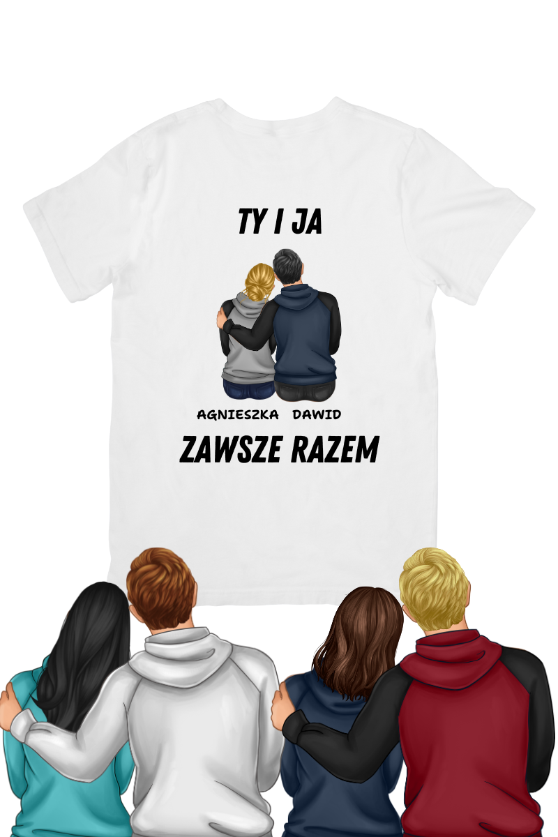 Koszulka "Ty i Ja Zawsze Razem" to wyjątkowy, personalizowany prezent dla par! Dopasuj kolor i długość włosów oraz podaj imiona. Jeśli chcesz dodatkowo określić kolor ubrań, wpisz swoje preferencje w wiadomości do sprzedawcy inaczej te zostaną wygenerowane losowo.