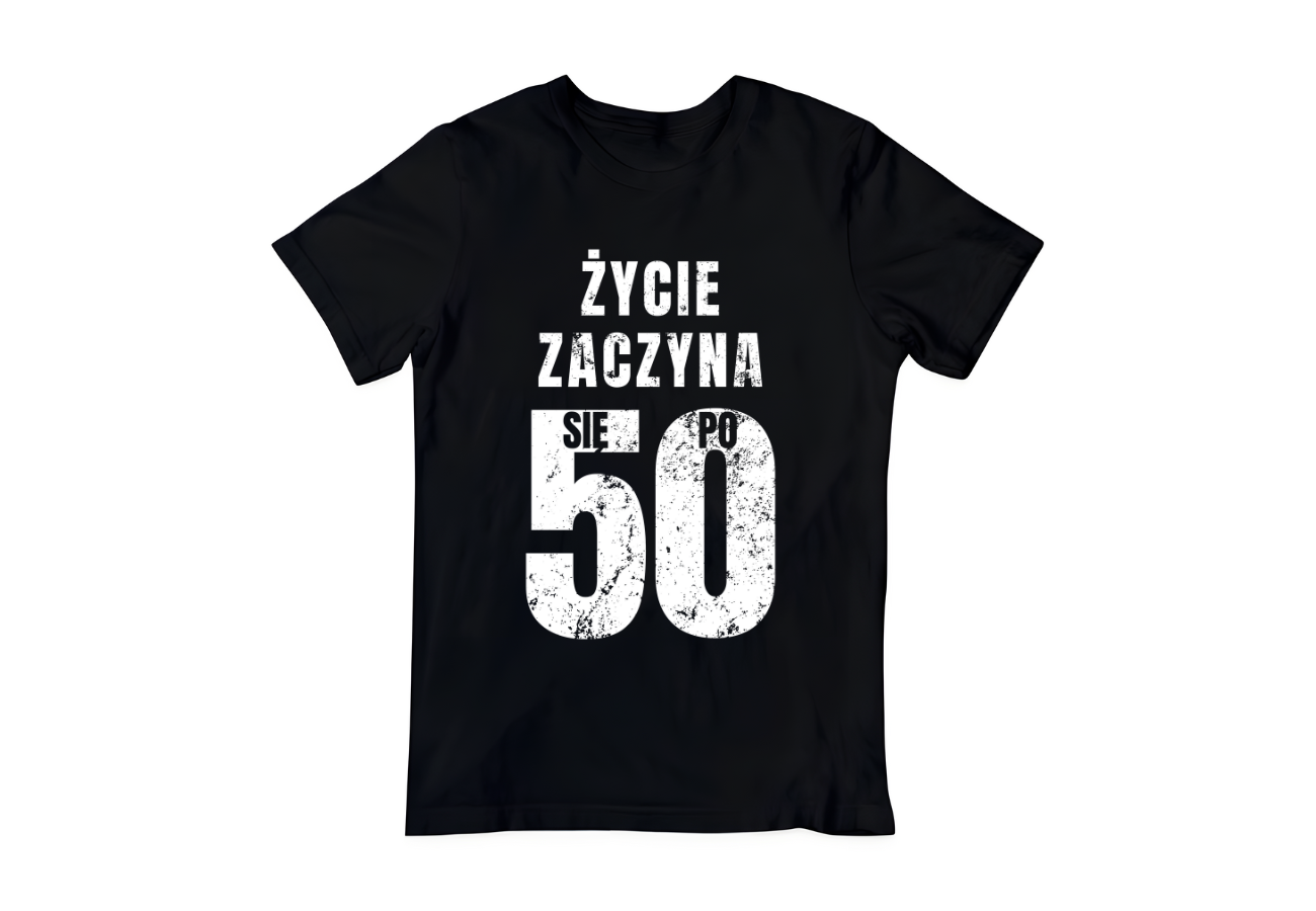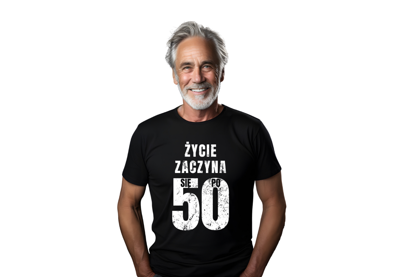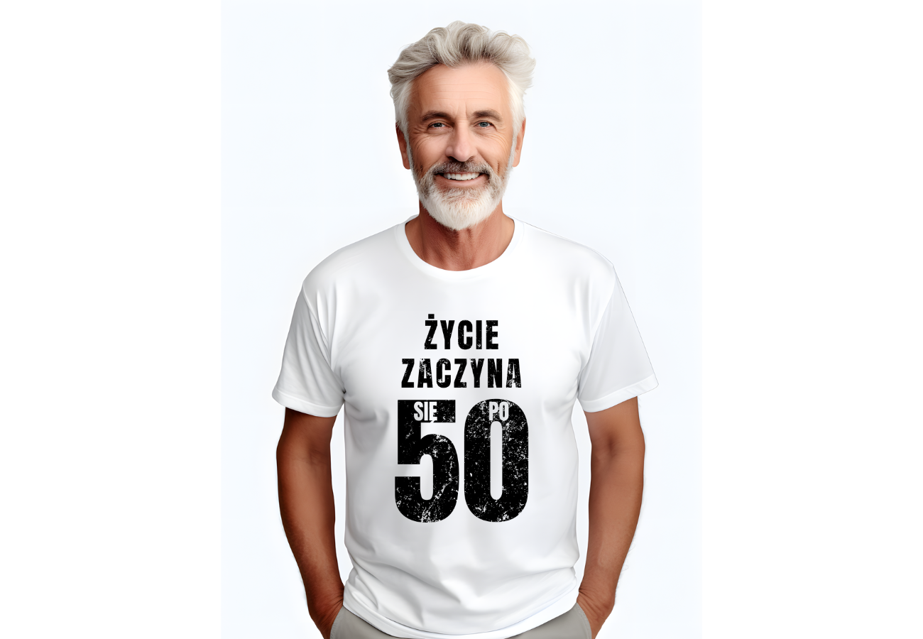 Koszulka "Życie Zaczyna Się Po 50" to idealny wybór na urodziny, symbolizująca nowy etap życia. Zabawny nadruk sprawdzi się jako prezent dla każdego, kto celebruje pięćdziesiątkę z uśmiechem i optymizmem.