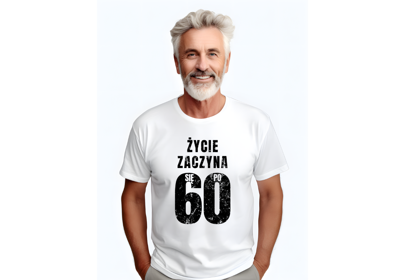 Koszulka "Życie Zaczyna Się Po 60" to idealny wybór na urodziny, symbolizująca nowy etap życia. Zabawny nadruk sprawdzi się jako prezent dla każdego, kto celebruje sześćdziesiątkę z uśmiechem i optymizmem.