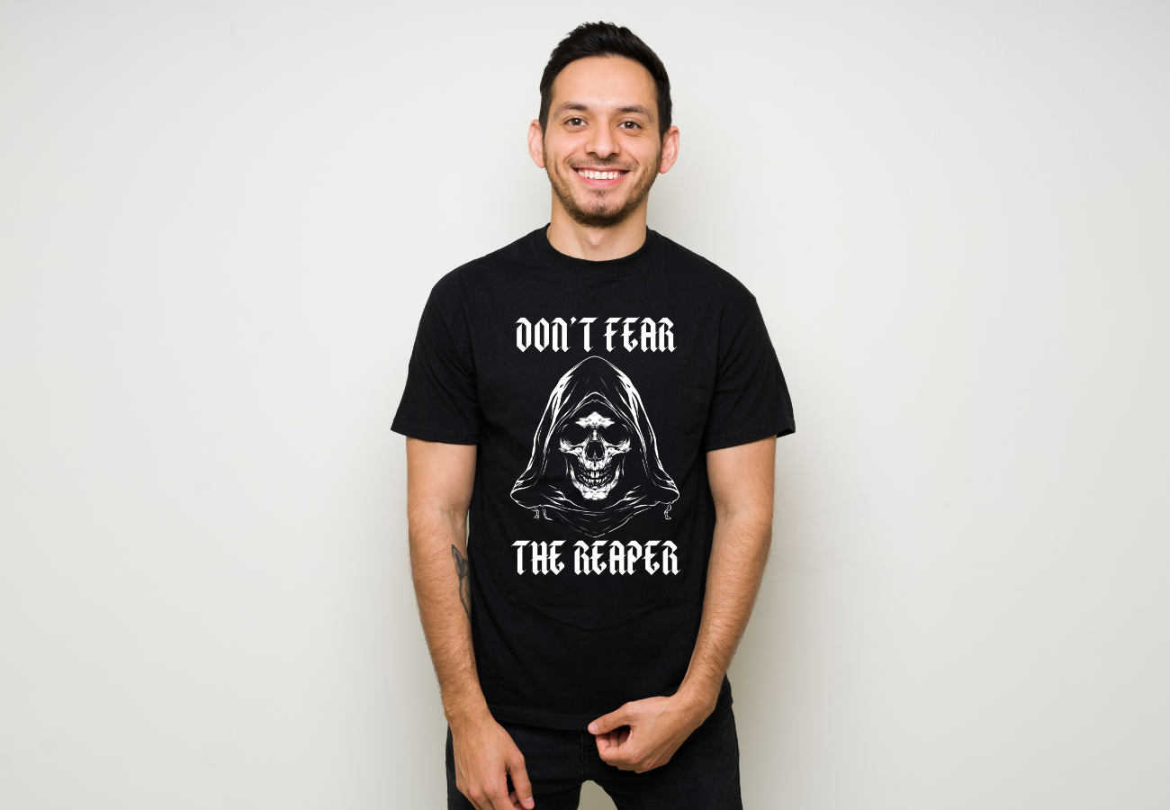 Koszulka z Kostuchą "Don't Fear The Reaper" - odważny przekaz w wyjątkowym stylu! To nie tylko ubranie, to manifestacja pewności siebie i odwagi w obliczu życiowych wyzwań.