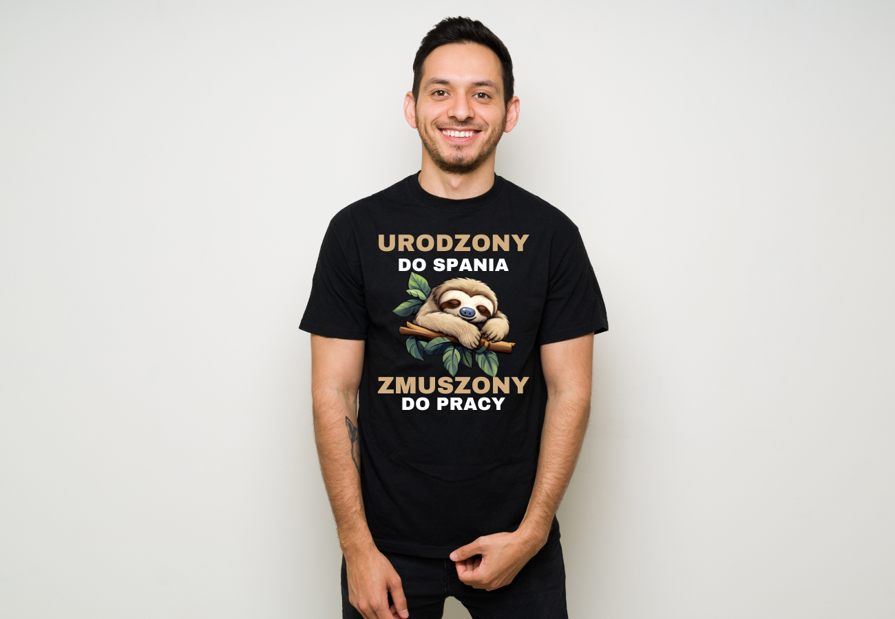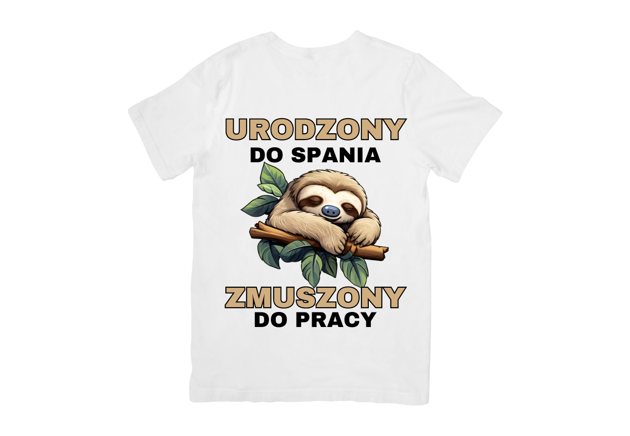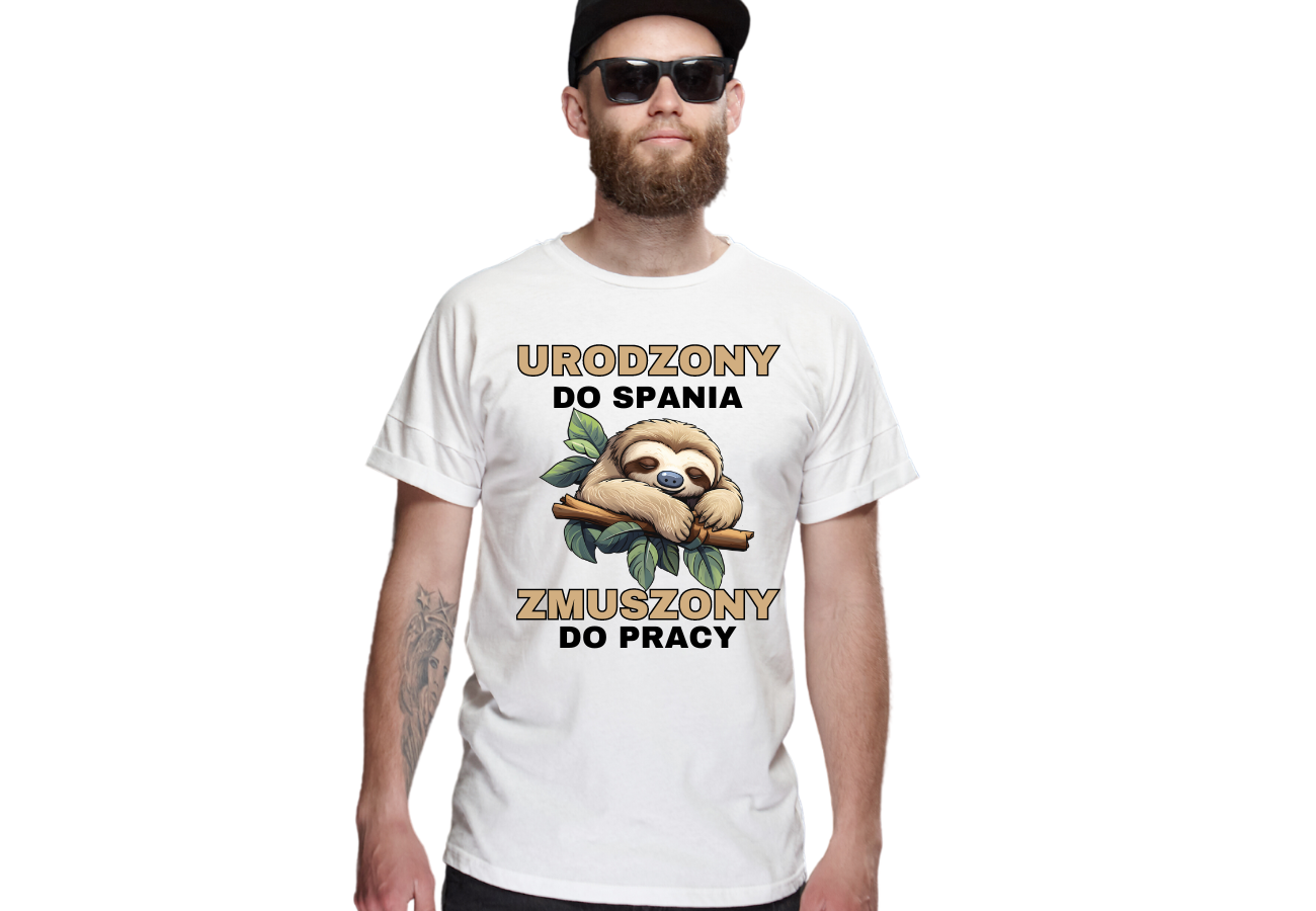 Ta koszulka przedstawia uroczego leniwca, który doskonale oddaje nasze codzienne uczucia lenistwa i potrzeby odpoczynku. Z humorem i ironią, napis "Urodzony do spania, zmuszony do pracy" dodaje uroku tej grafice. To idealny sposób na wyrażenie poczucia humoru i identyfikację się z tym relaksującym zwierzęciem!